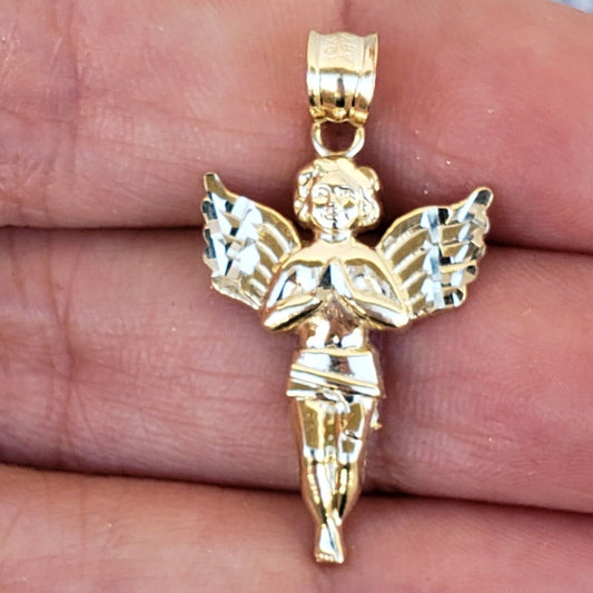 Real 10k Gold diamond cut praying Angel pendant charm 1.20 inch long