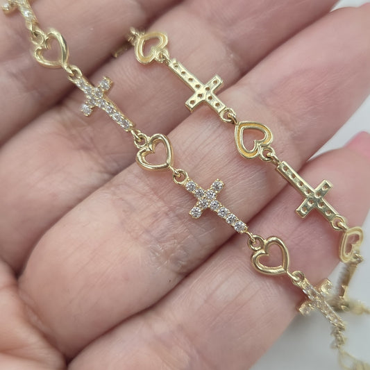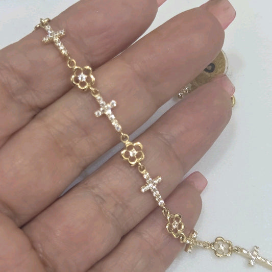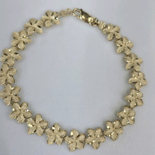 solid 14k yellow gold Hibiscus flower Bracelet 7 Inches