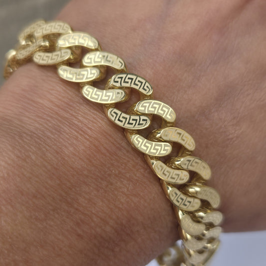 Big Mans 14k Gold 8 Mm monaco bracelet 9 inches long Greek Key