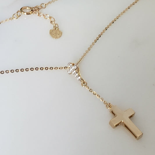 Womans real 14k yellow gold plain cross pendant chain charm set 18 19 inches