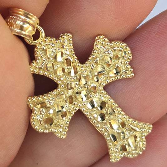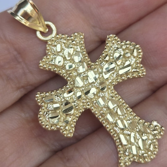 Solid Real 10k Gold Nugget Cross Pendant 1.25 inch long
