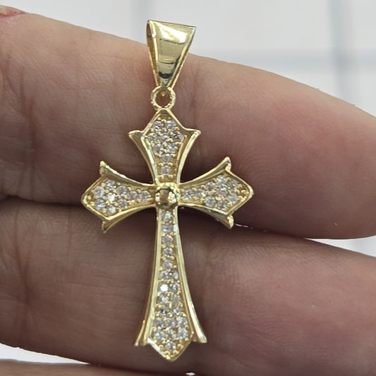 14k yellow gold cross Pendant charm 1.5 Inches Long