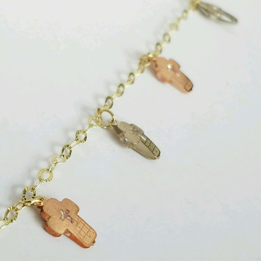 2 tone solid 14k rose Yellow Gold dangling Cross charm Bracelet 7 inches