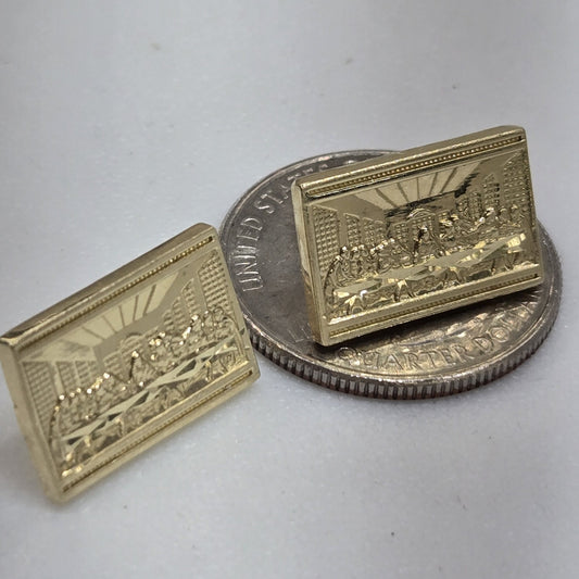 Big 10k yellow gold Last Supper Earrings 0.75 inch long Round