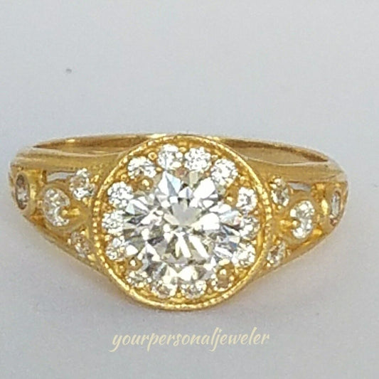 solid 14k yellow gold halo Round cut stone Engagement Ring size 7 1`.50 carat