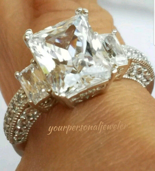 Real 14k white Gold Emerald Cut Engagement Ring Size 5 6 7 8 4 carat