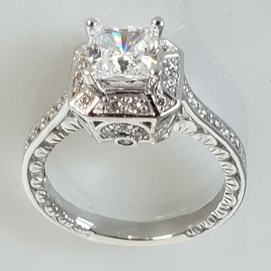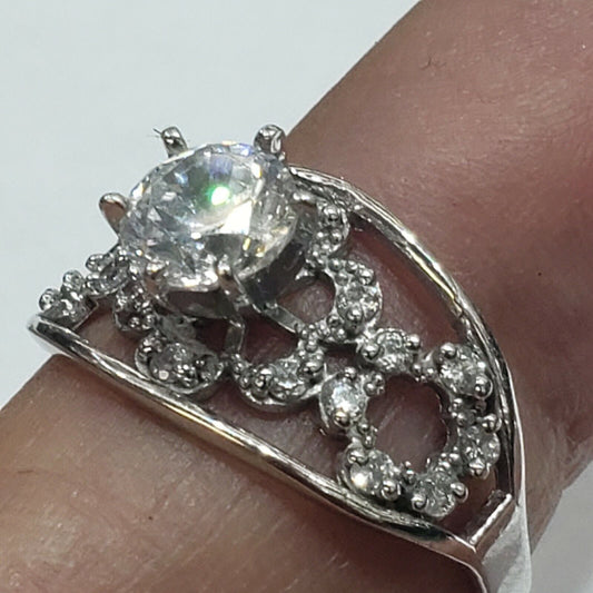 Wide 1.20 carat 14k white Gold Round Engagement Ring S 7.75 cz
