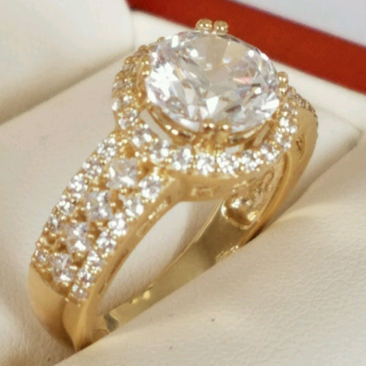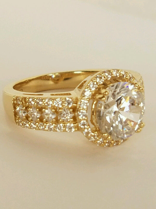3 Carat 14k yellow Gold halo round CZ Engagement Ring 5 6 7 8