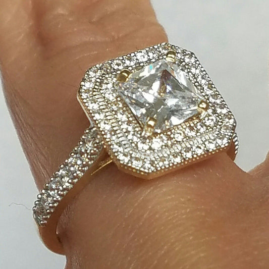 10k Yellow Gold halo Princess Cut Engagement ring S 6.5 2 Carat