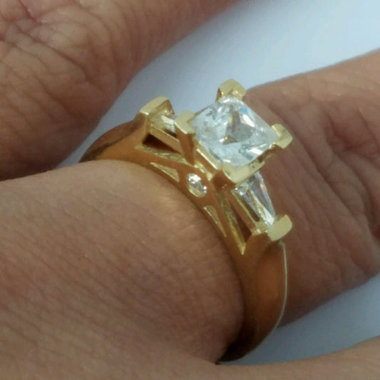 14k real Yellow Gold Baguette Princess cut CZ Engagement Ring s 6.5