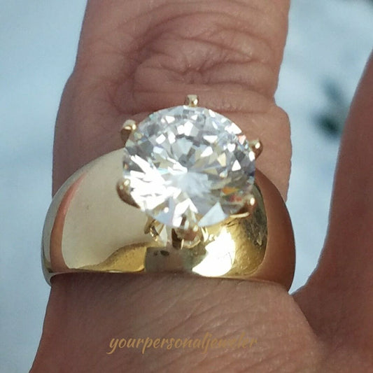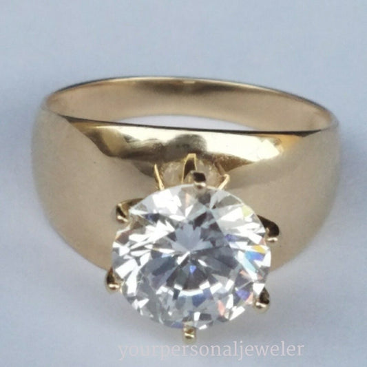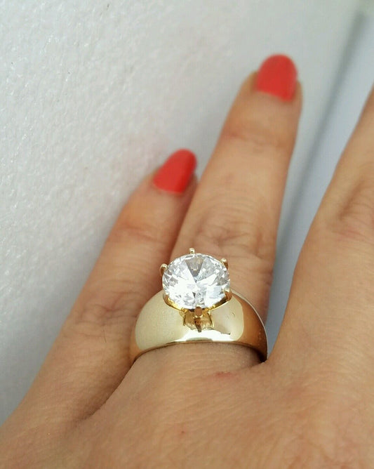 5 CT Round Cut wide 14k yellow Gold Engagement Ring size 5 cz