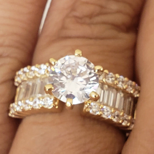 3 Carat 14k yellow Gold round cut baguette salitaire Engagement Ring size 6 7 8