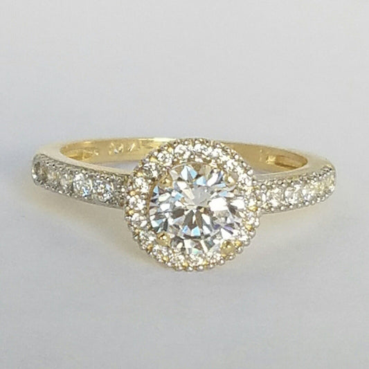 1.20 carat 14k solid Yellow Gold round Halo Engagement Ring size 5 6 7 8 9