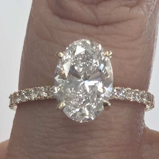14k Yellow Hold 2.50 Carat Oval Cvd Lab Grown Natural Diamond Engagement Ring
