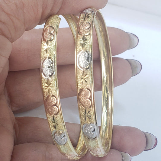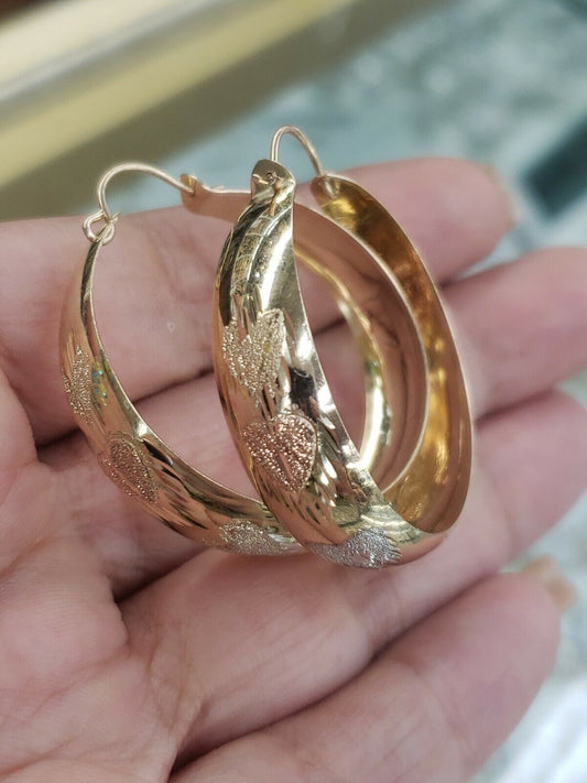 large Big 14k yellow white rose gold hoop earrings hearts 1.85 inch long 3 tone