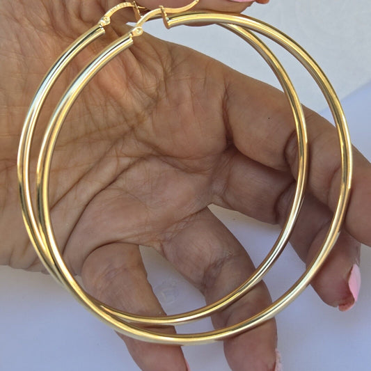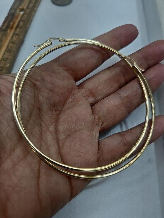 Big 14k yellow gold plain hoop earrings 3.25 inches Long 80 Mm
