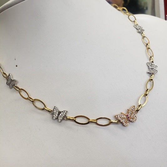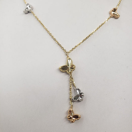 Solid 14k yellow White Rose gold Butterfly necklace 18 inches long