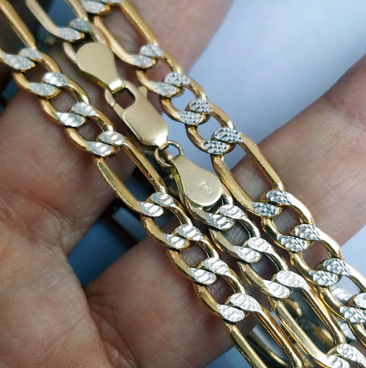 2 tone 14k yellow gold 6 mm Figaro chain necklace 26 inches long