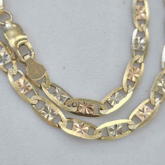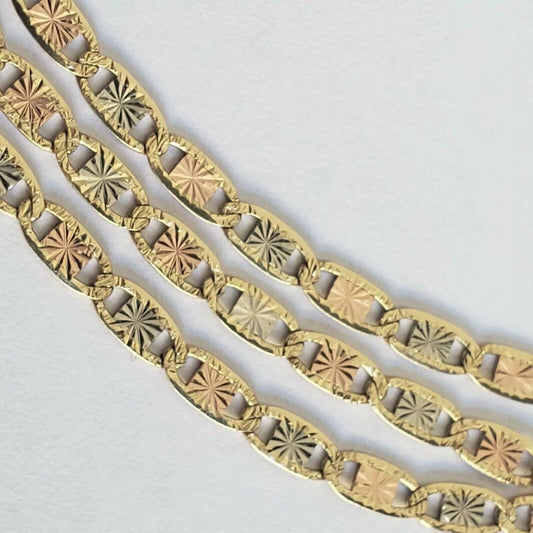 14k yellow white rose gold Tri Colir Chain Necklace 20 inches long chain 2 mm