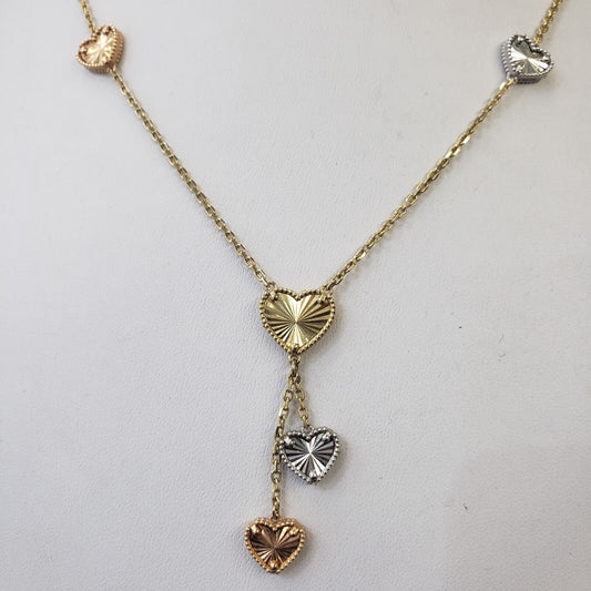 14k yellow White Rose gold Danglin Hearts necklace 18 19 inches long