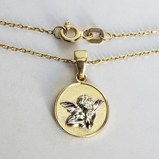 Solid 14k yellow gold angel pendant charm .70" long 18 inch chain necklace set