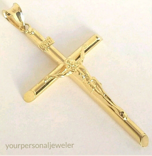 1.75 inch long INRI 14k yellow Gold Jesus Crucifix Cross Pendant charm necklace