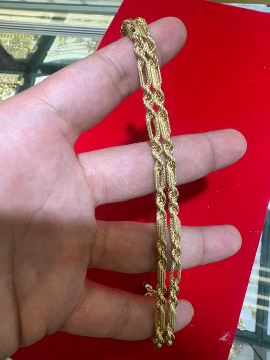 14k yellow gold mans woman Cuban chain necklace 26 inches long 5 mm diamond cut