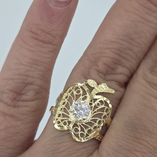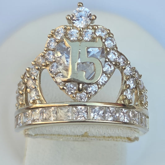 14k Yellow Gold 15 anos Quinceanera Heart crown tiara Ring