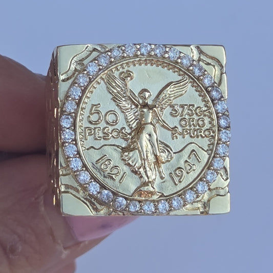 Big solid 14k Yellow Gold 50 Pesos Centenario Nugget Mans Ring Size 9 10 11 12