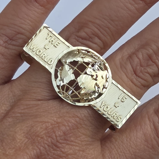 Real 10k yellow Gold 2 Two finger Ring The world Is Yours