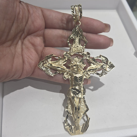 Big X Large diamond cut 14k Gold Jesus Crucifix Cross Pendant 5 inches long