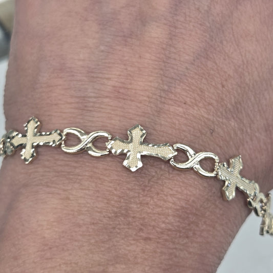 real 10k Yellow gold Infinity Cross Bracelet 7.5 Inches Long