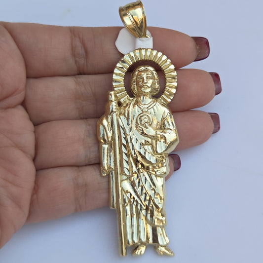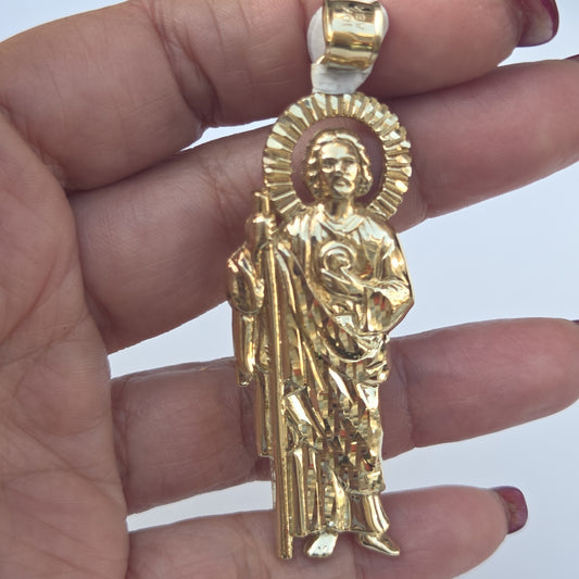 Big Real 10k Yellow Gold Saint Jude judas Pendant charm 2.75 Inches Long