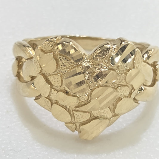 Real 14k yellow Gold Big Heart Nugget Ring Cuban Band