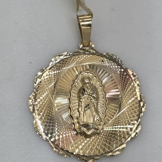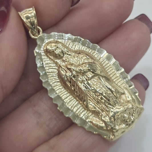 10k yellow gold Guadelupe virgin Mary pendant charm diamond cut 2 Inches long