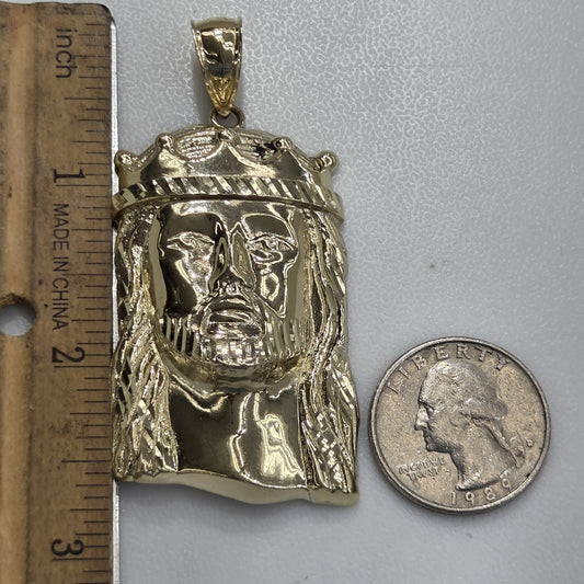 Big 10k Gold Jesus Face Pendant charm 2.65 inches long