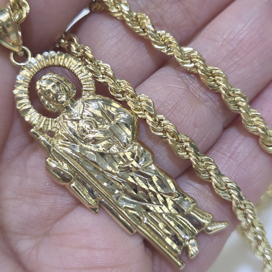 Real 10k Gold Saint Jude Pendan 24 Inches Rope chain set