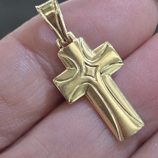 Real 14k Yellow Gold Cross Pendant charm 1.1 inch long