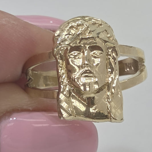 Solid 10k yellow Gold Jesus Ring Size 7 8 9 10