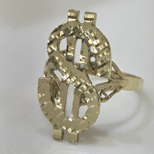 solid 10k yellow Gold 100 dollar Money Dollar Sign Ring