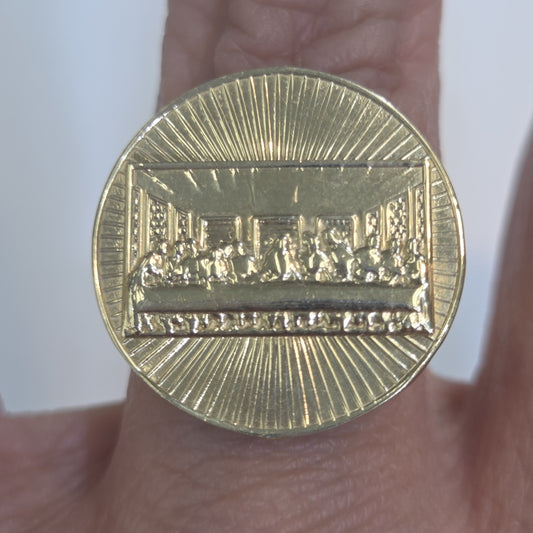 Round Real 10k yellow Gold Last Supper Ring Size 7 8 9 10