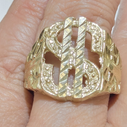 Big solid 10k yellow Gold dollar Sign Money Ring Size 8-12