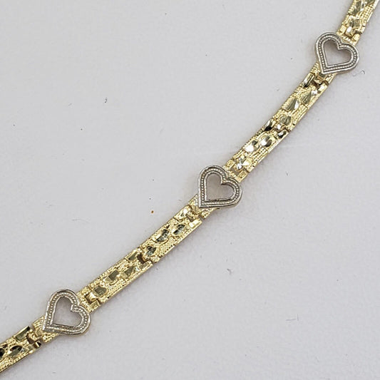 Womans 14k gold hearts Nugget Bracelet 7.75 Inches long diamond cut