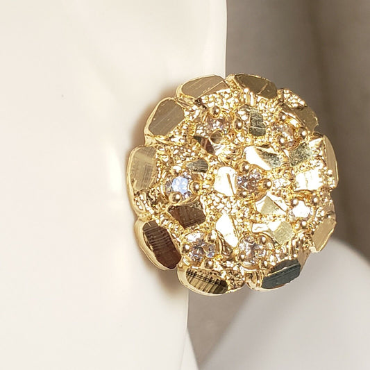 Big Round 10k yellow Gold Man Made Diamond Nugget Earrings