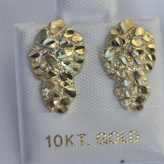 Big 10k yellow gold nugget earrings 0.75 inch long