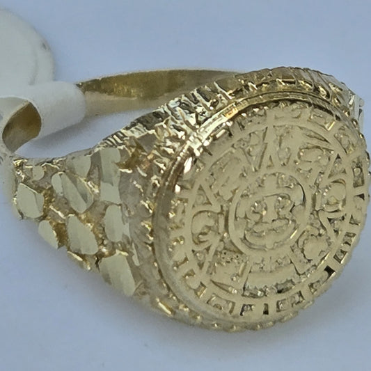 Real 10k yellow Gold Nugget Aztec Calender Ring S 8 9 10 11