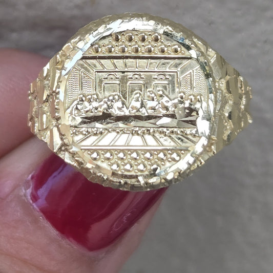 Real 10k yellow Gold Nugget Last Supper Ring S 8 9 10 11 12