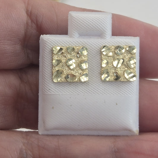 10k yellow gold Square nugget earrings 0.40 inch long Mediun Size