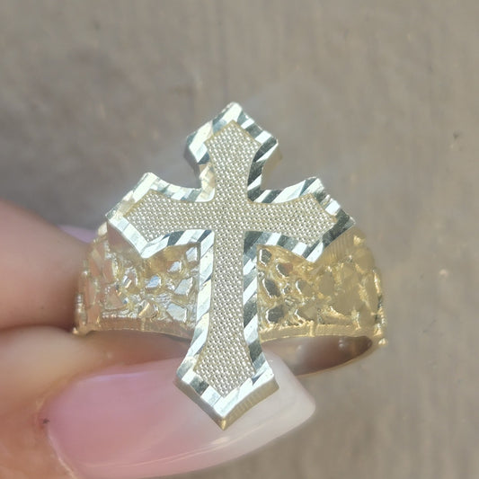 Bg Real 10k yellow Gold Nugget Cross Ring