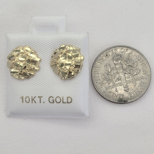 Round 10k yellow Gold Nugget Earrings 10 Mm